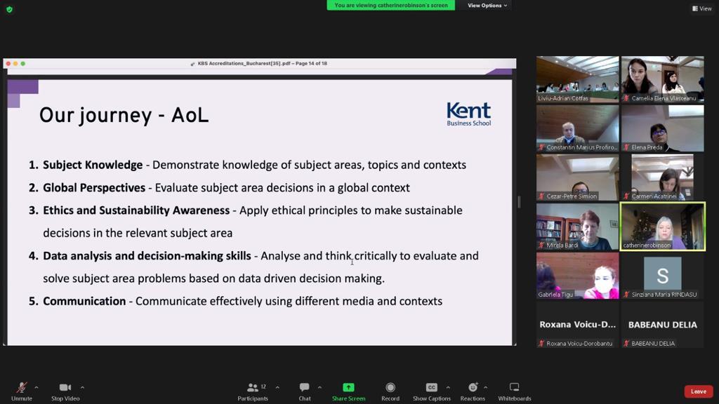 – standard 3, 5 & 8 (online presentation by special guest Prof. Catherine Robinson, PhD, Deputy Dean, Kent Business School, University of Kent); - Follow up – documentation visits at the University of Amsterdam, Netherlands & the University of Zagreb, Croatia;